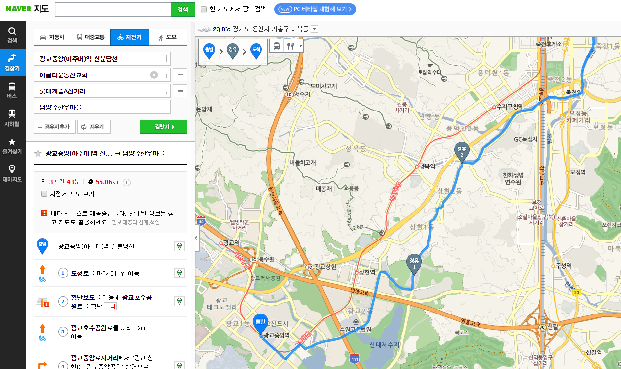 영상에 사용된 네이버 지도 경로 링크입니다.