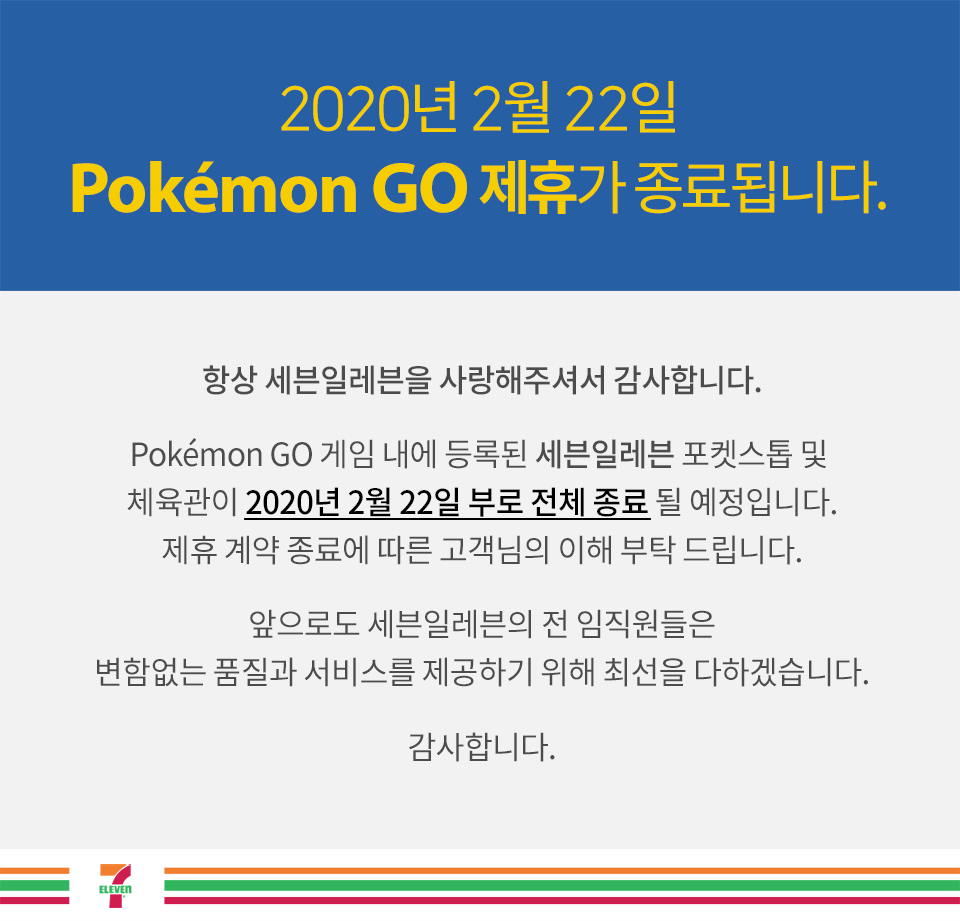 2020년 사라지는 포켓스탑들을 위해: 세븐일레븐, 롯데리아, 엔젤리너스, 크리스피, TGI Fridays § 포켓몬고 EX 체육관 스폰서 종료!
