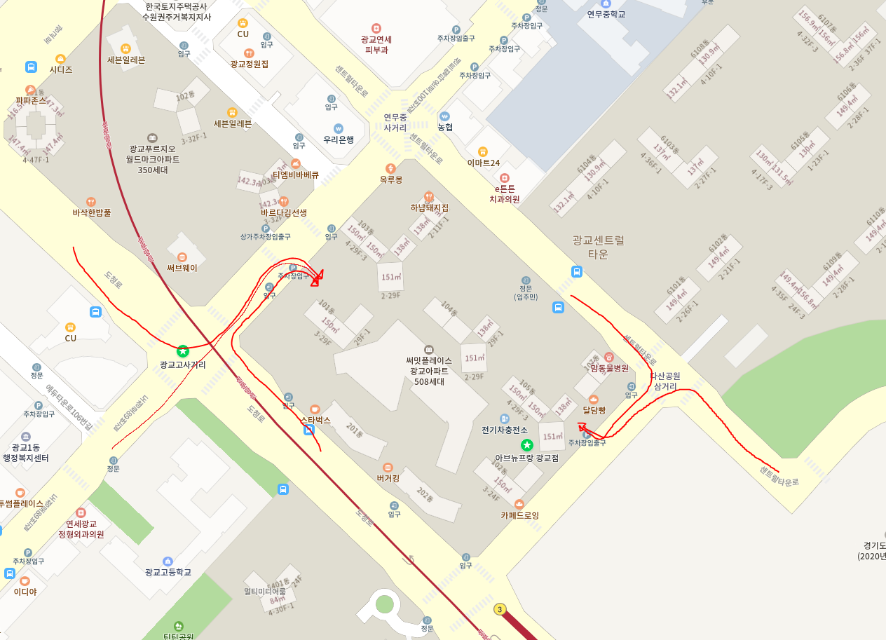 주변의 광교 롯데아울렛, 광교 롯데시네마, 광교 카페거리(스시유카이, 베이비기네스)