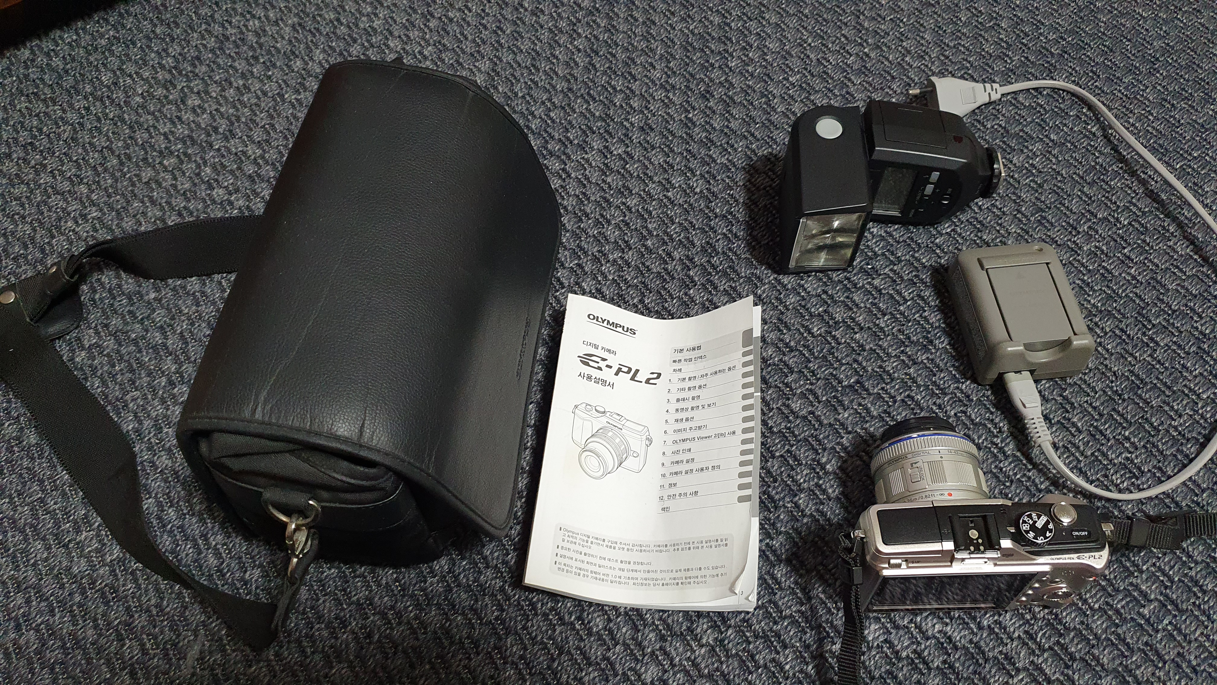 가방, 설명서, 바디, 14-42mm 렌즈, 플래시, 여분 배터리, 충전기, 삼성 EVO+ 64GB SD카드