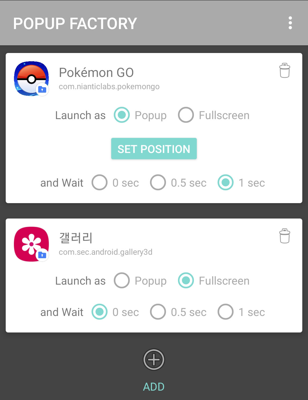 (선택) 5. 연이어 실행하고 싶은 앱이 있으면 ADD 버튼으로 더 추가하고