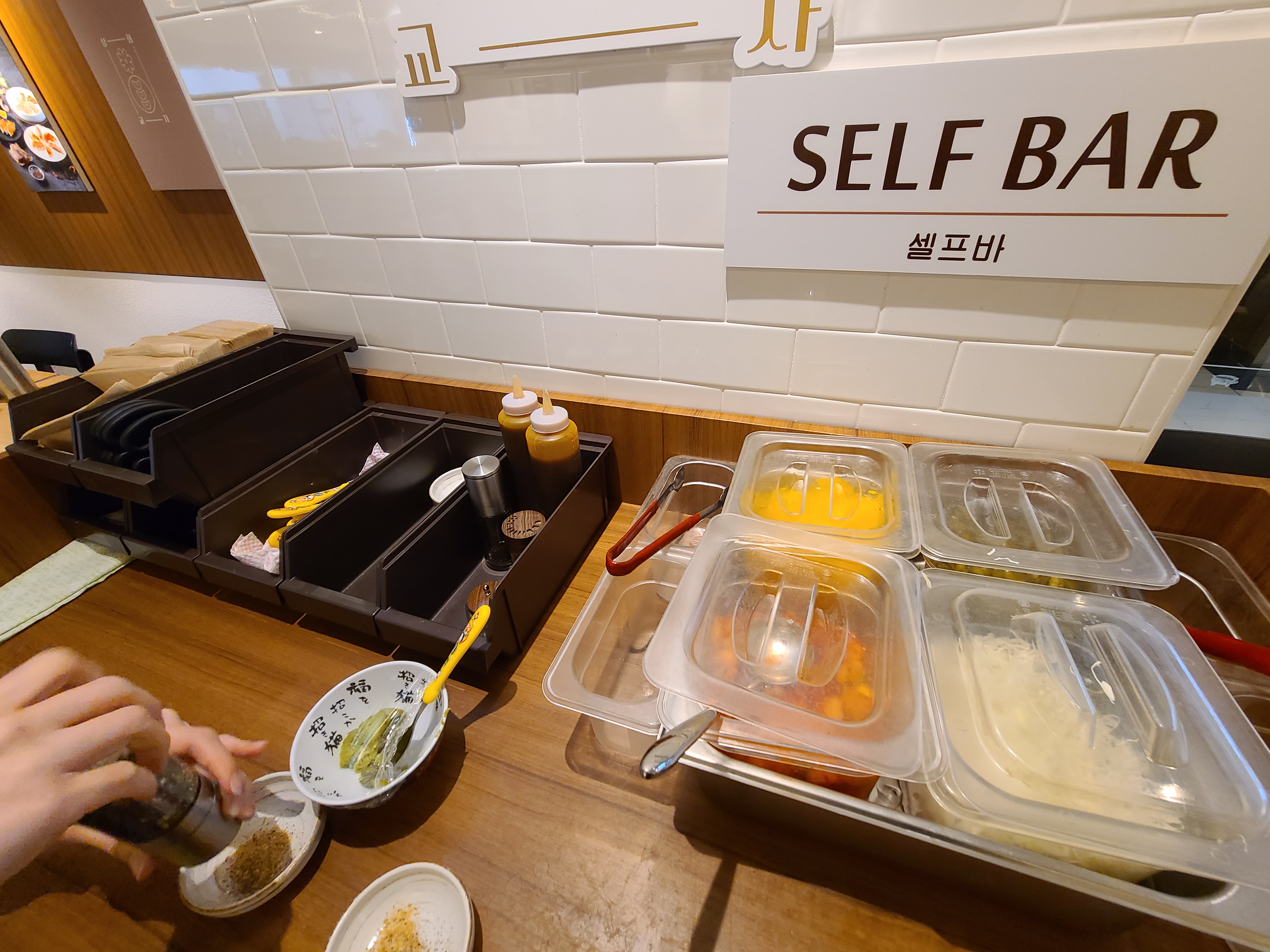 먹기전 셀프바에서 감귤소금과 후추를 후추후추
