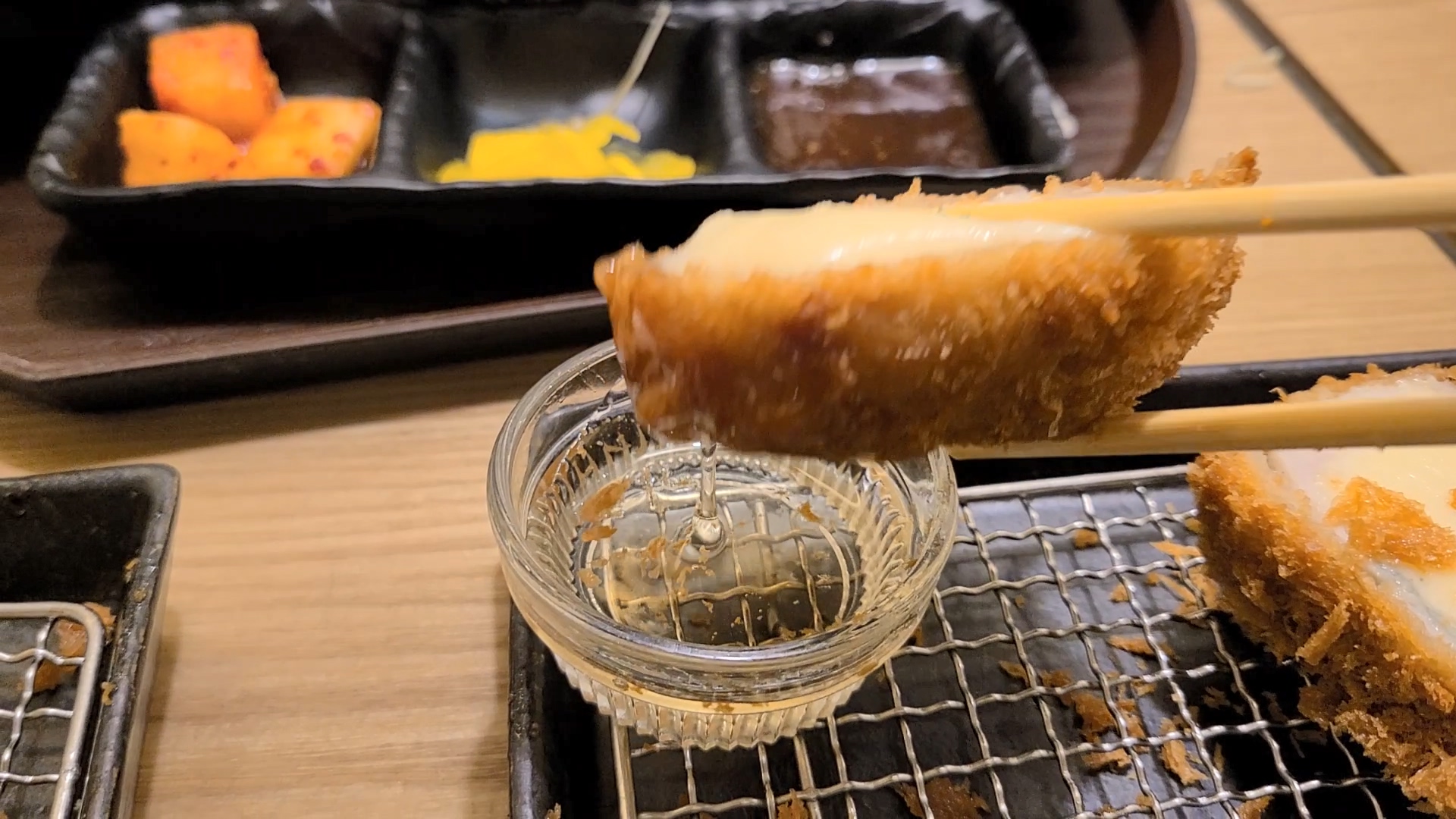 돈까스소스가 아닌 소금과 와사비로 돈까스를 즐기고 싶을 때,