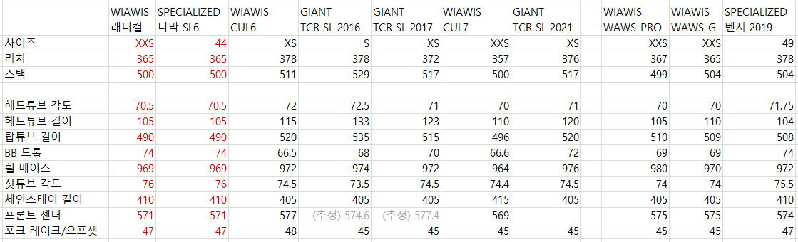스페셜라이즈드 타막 SL6과 완전히 같은 지오메트리 값을 가져다 올라운드 신제품으로 내놓았기 때문입니다.