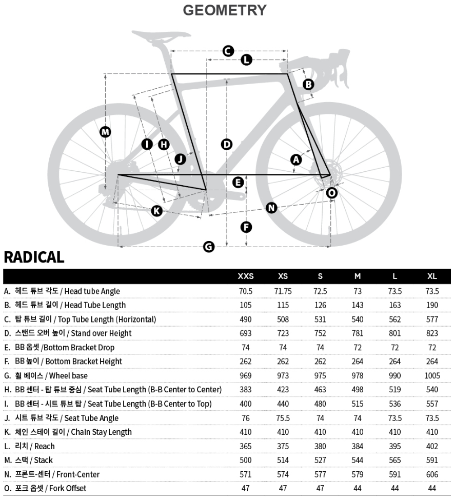 즉 프레임의 길이, 각도, 포크 레이크 등이 mm 단위까지 같습니다.