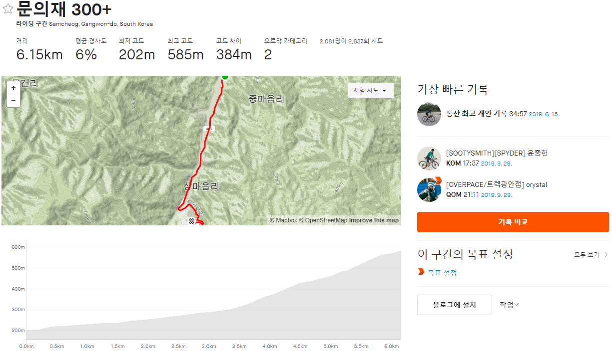문의재 300+ 스트라바 구간정보: https://www.strava.com/segments/14694428