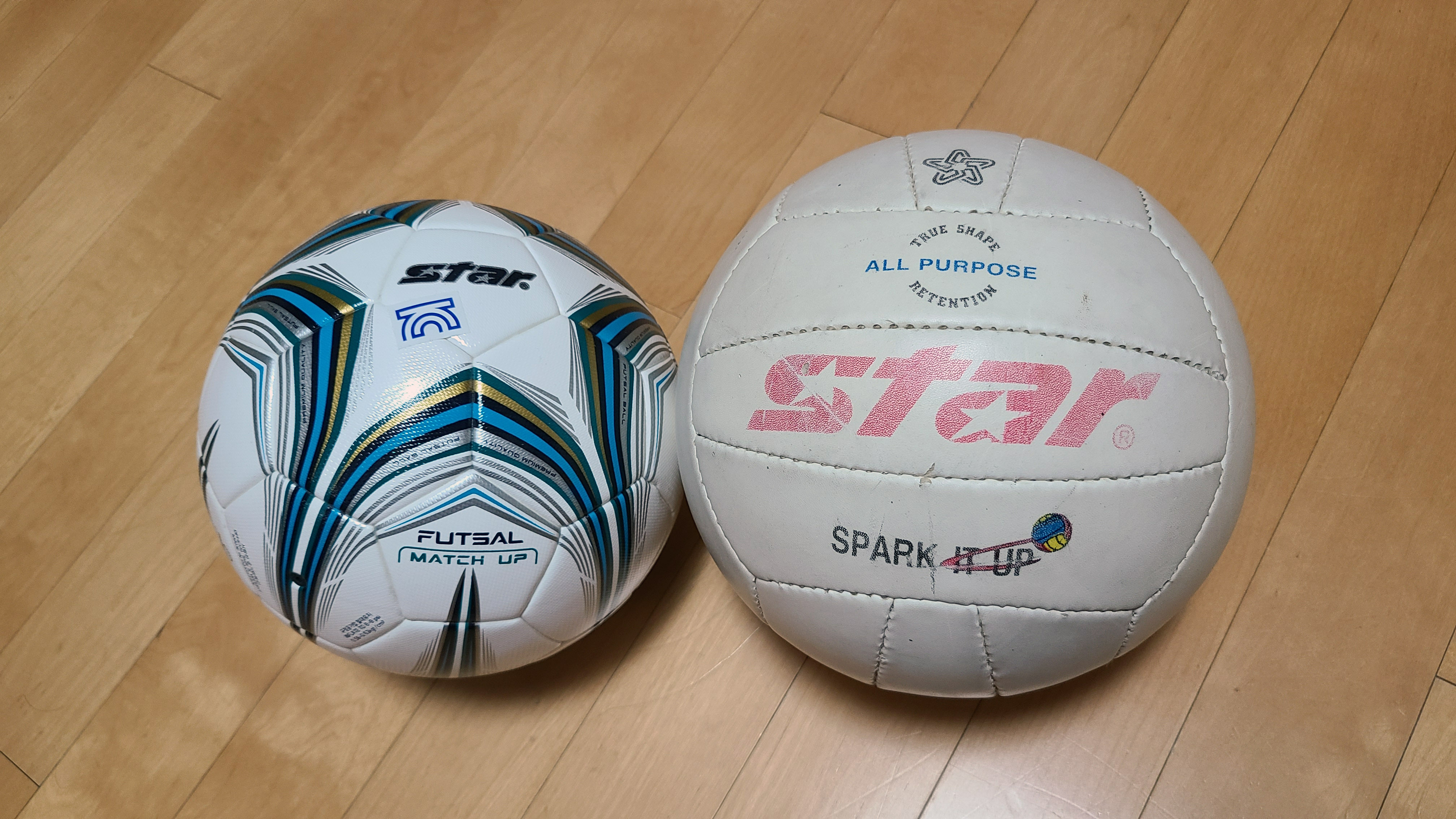 풋살공의 사이즈는 축구공 4호와 비슷하며 덜 튀는 특성이 있음.