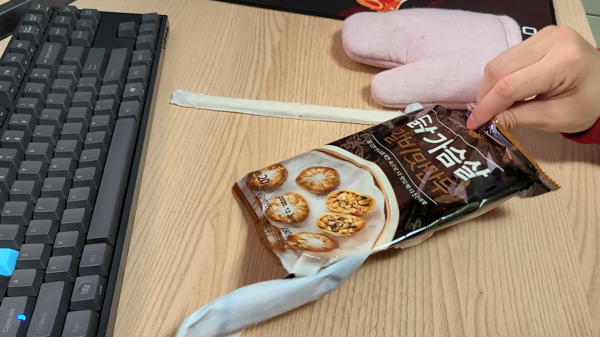 해동하지 말고, 살짝 찢어 봉지째 전자레인지에 3분 돌리라고 하네요.
