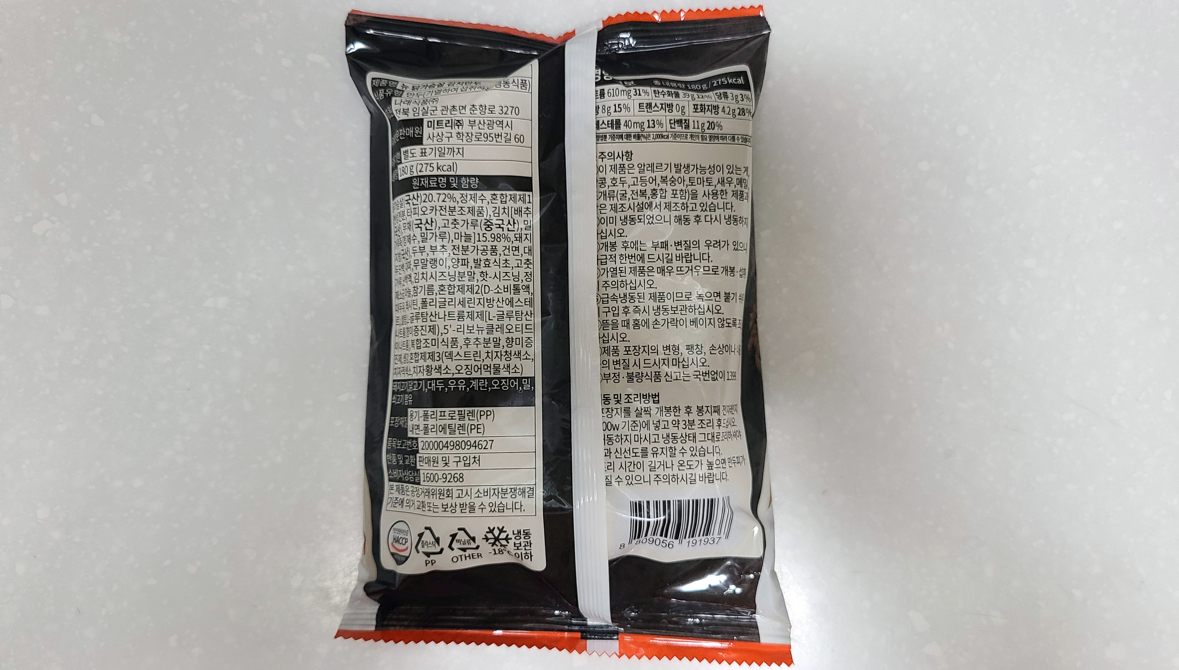 오늘 먹어볼 제품은 마이닭의 닭가슴살 김치만두입니다.