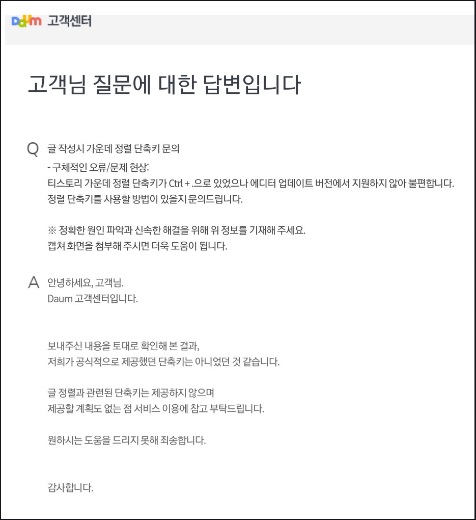 부디 기존 답변이, 고객센터가 넘겨짚은 답변이었길 바라며
